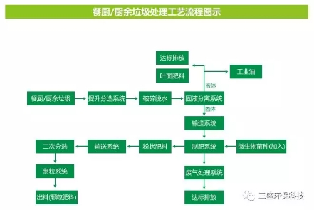 為了實現(xiàn)廚余垃圾就地就近式集中處理,達(dá)到廚余垃圾減量化、資源化、無害化處理的目標(biāo)。根據(jù)廚余垃圾本質(zhì)的特點及處理工藝的對比選取,采用微生物菌種好氧發(fā)酵技術(shù)處理廚余垃圾,結(jié)合三盛環(huán)保處理廚余垃圾的技術(shù)工藝,將廚余垃圾資源化處理再利用。
